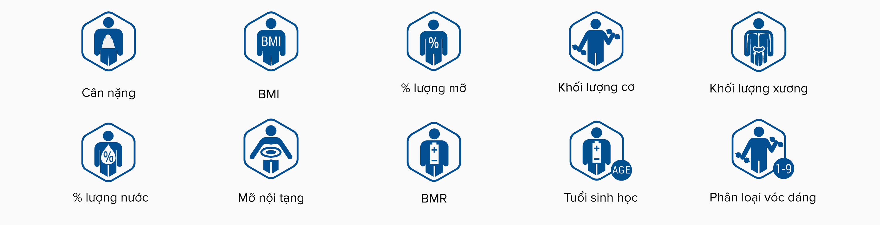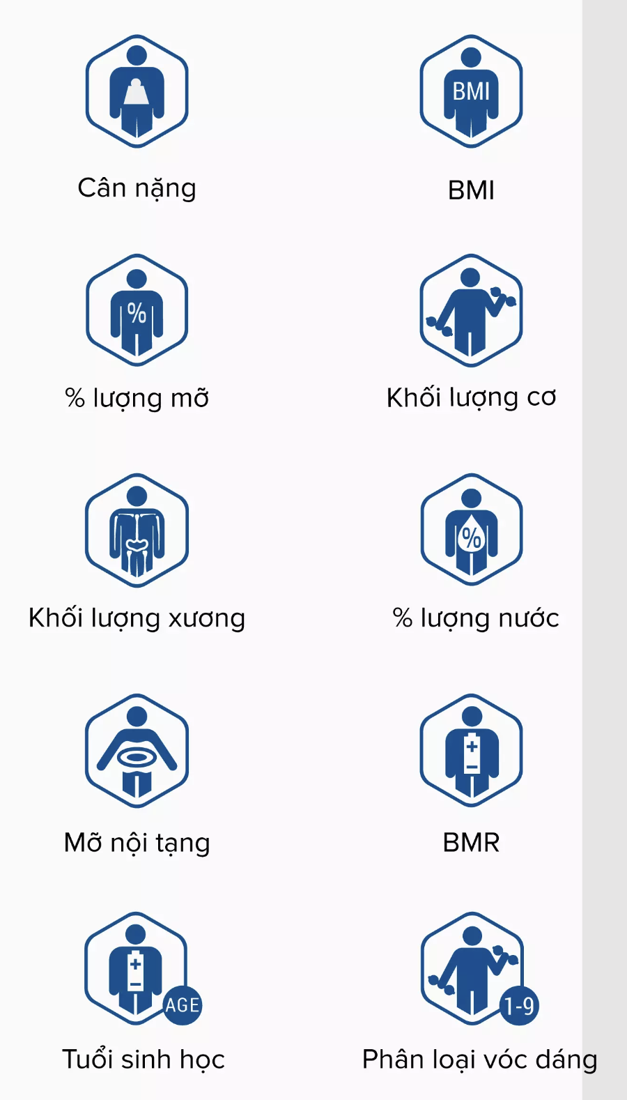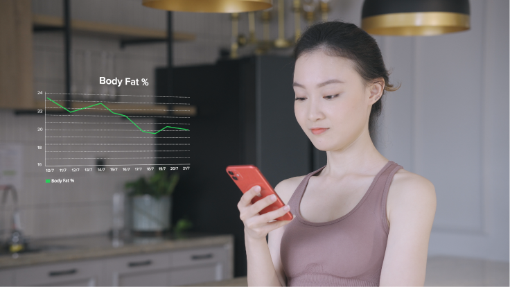 Phân tích chính xác 10 chỉ số thành phần cơ thể, tự động nhận diện và lưu trữ 5 người dùng