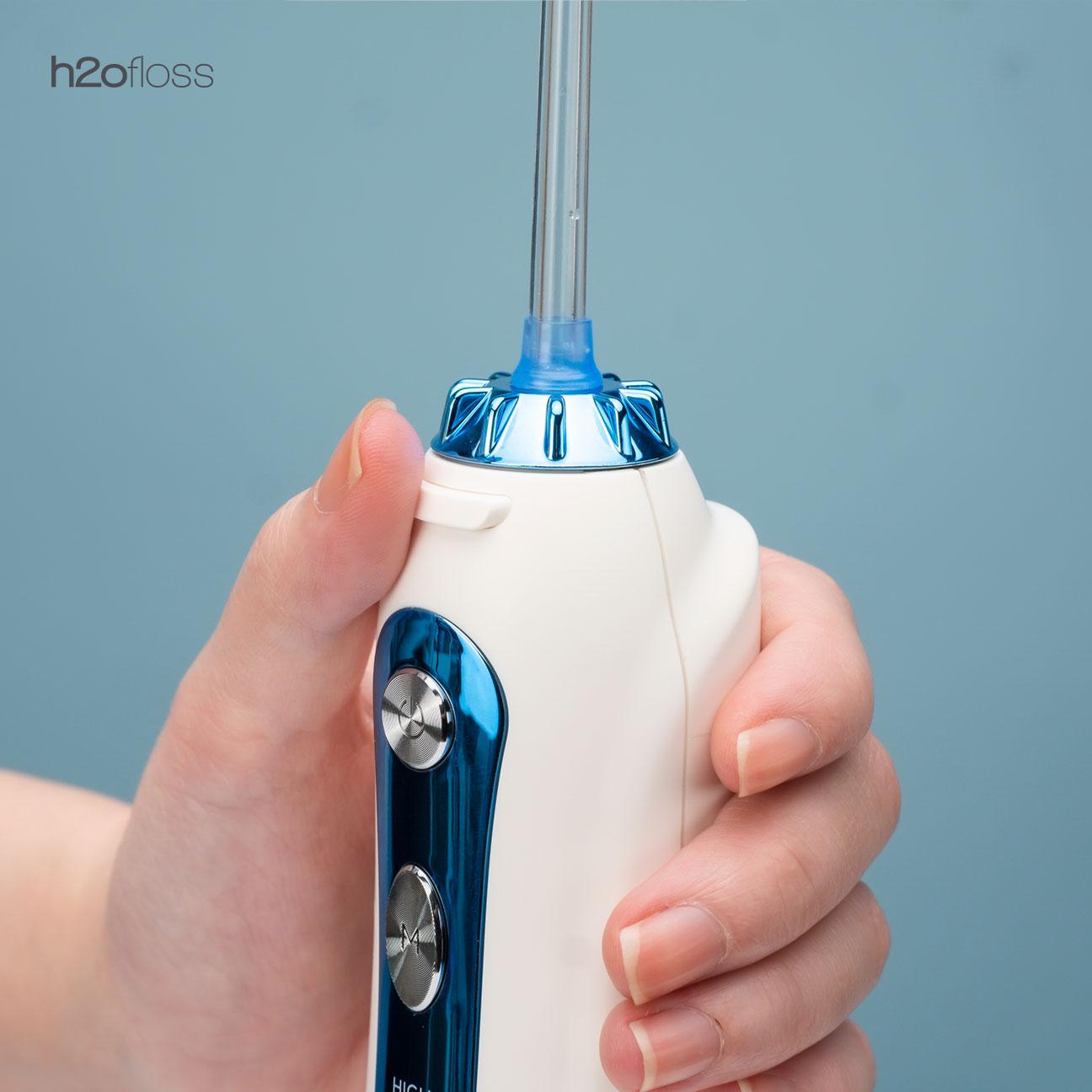 Chỉ đánh răng thôi là chưa đủ. Sử dụng ngay máy tăm nước H2ofloss HF6P phiên bản mới để phòng tránh sâu răng, hôi miệng, viêm lợi. Máy sử dụng công nghệ tia nước siêu âm, đường kính vòi phun chỉ 0,6 mm tạo ra áp lực cao đạt 110 psi, dễ dàng thổi bay các mảng bám cứng đầu ở kẽ răng, làm sạch hiệu quả mọi vị trí ngóc ngách trong khoang miệng mà bình thường tăm tre hay chỉ nha khoa không tiếp cận được.
