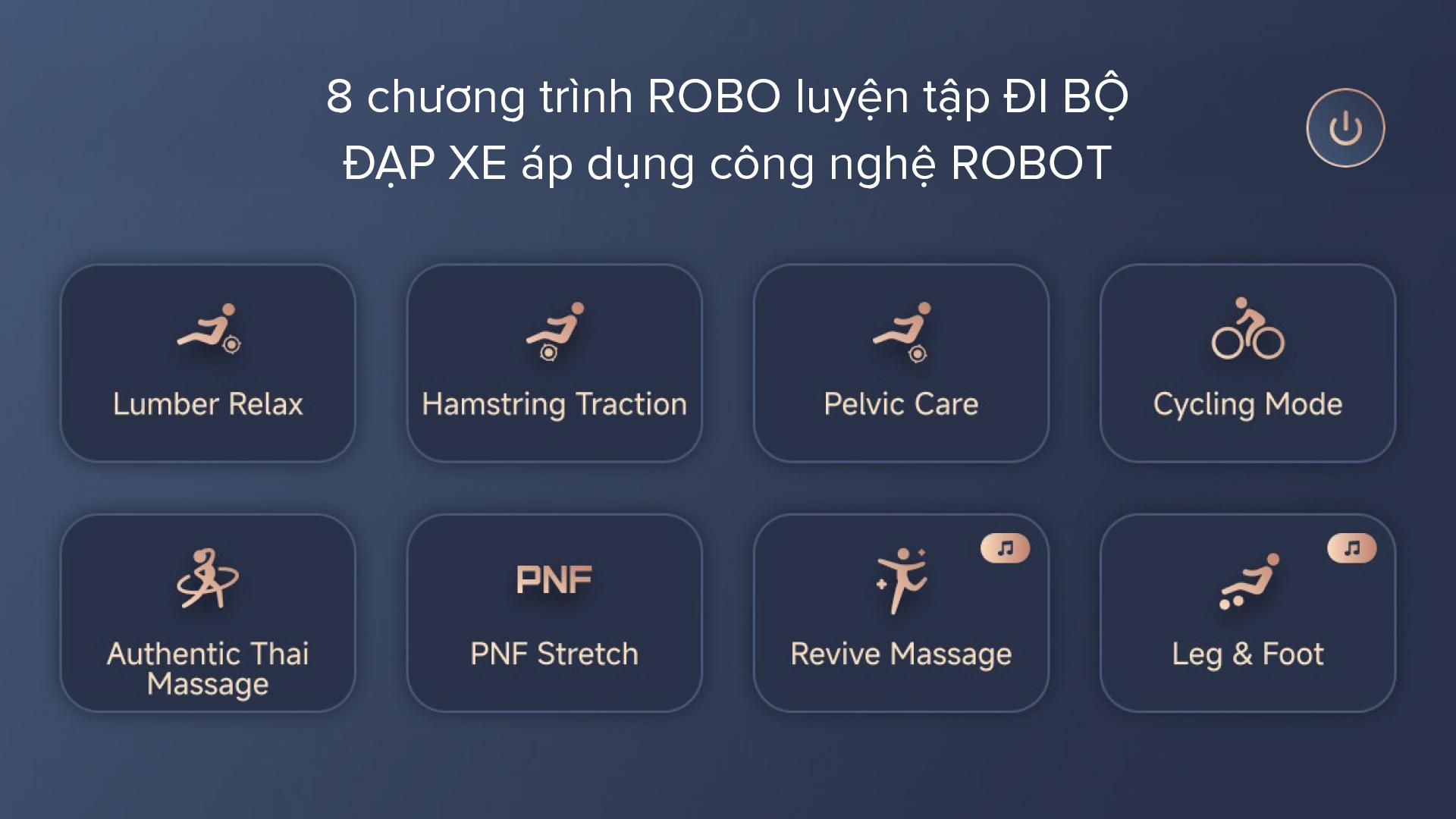 20 Chương trình massage tự động - 12 Chương trình chuyên biệt + 8 Chương trình ROVO Walking chuyên sâu