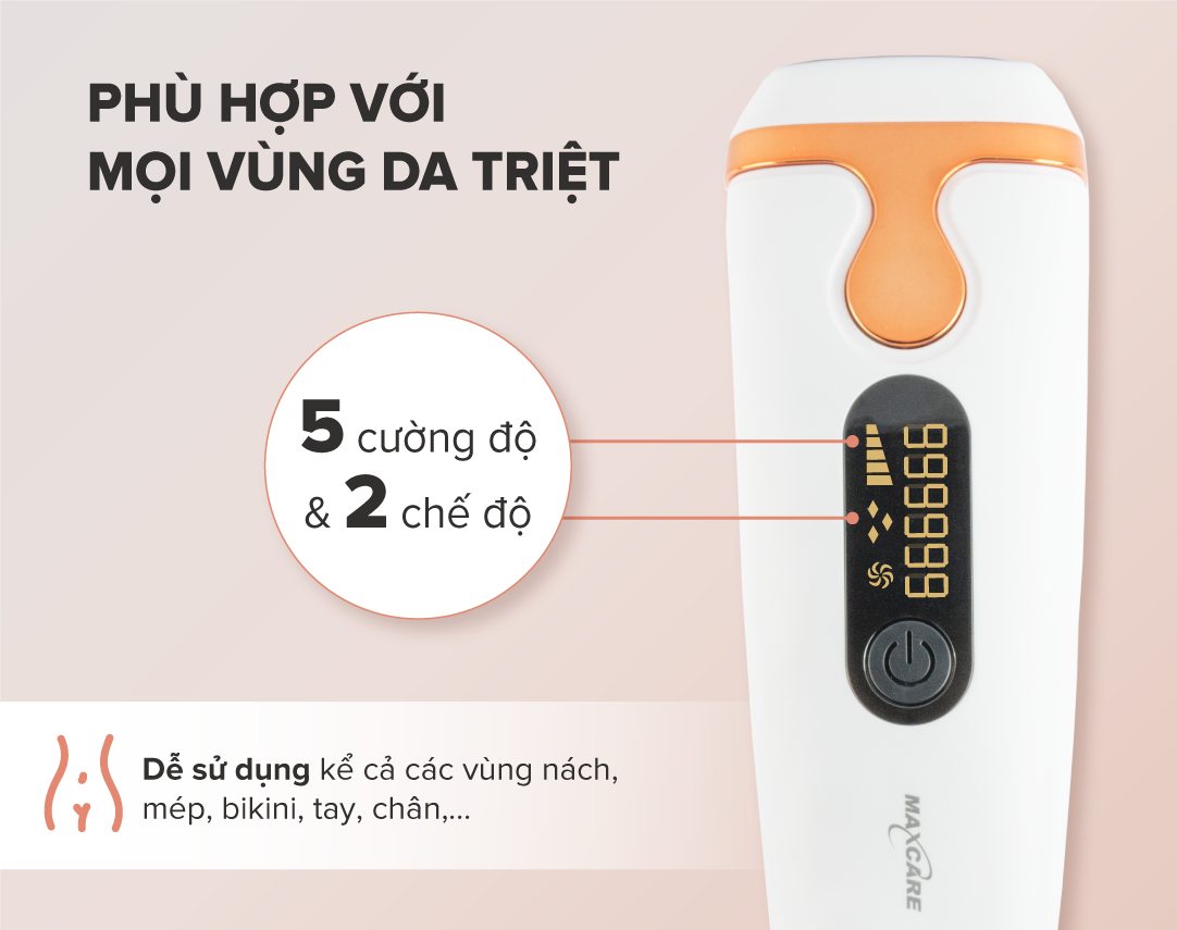 05 mức cường độ xung cho phép điều chỉnh mức độ phù hợp nhất với từng vùng da