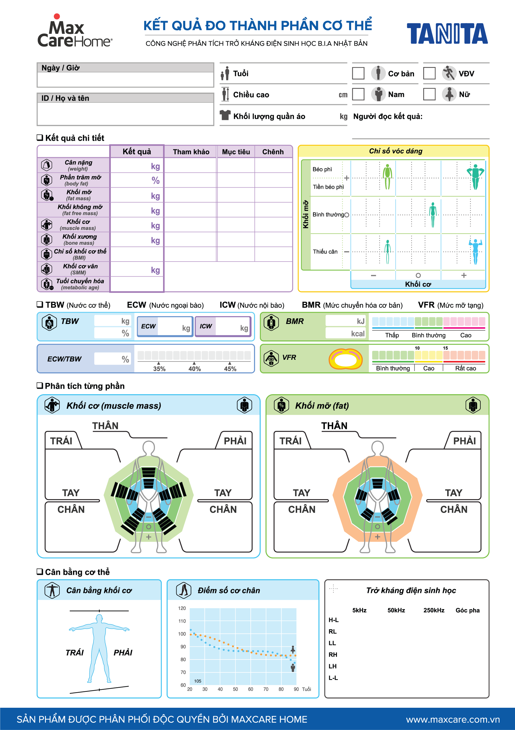 Phiếu kết quả phân tích thành phần cơ thể cân Tanita MC-780MA cung cấp